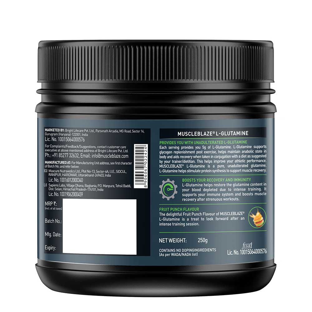 MuscleBlaze L-Glutamine, 250 g (0.55 lb), Fruit Punch
