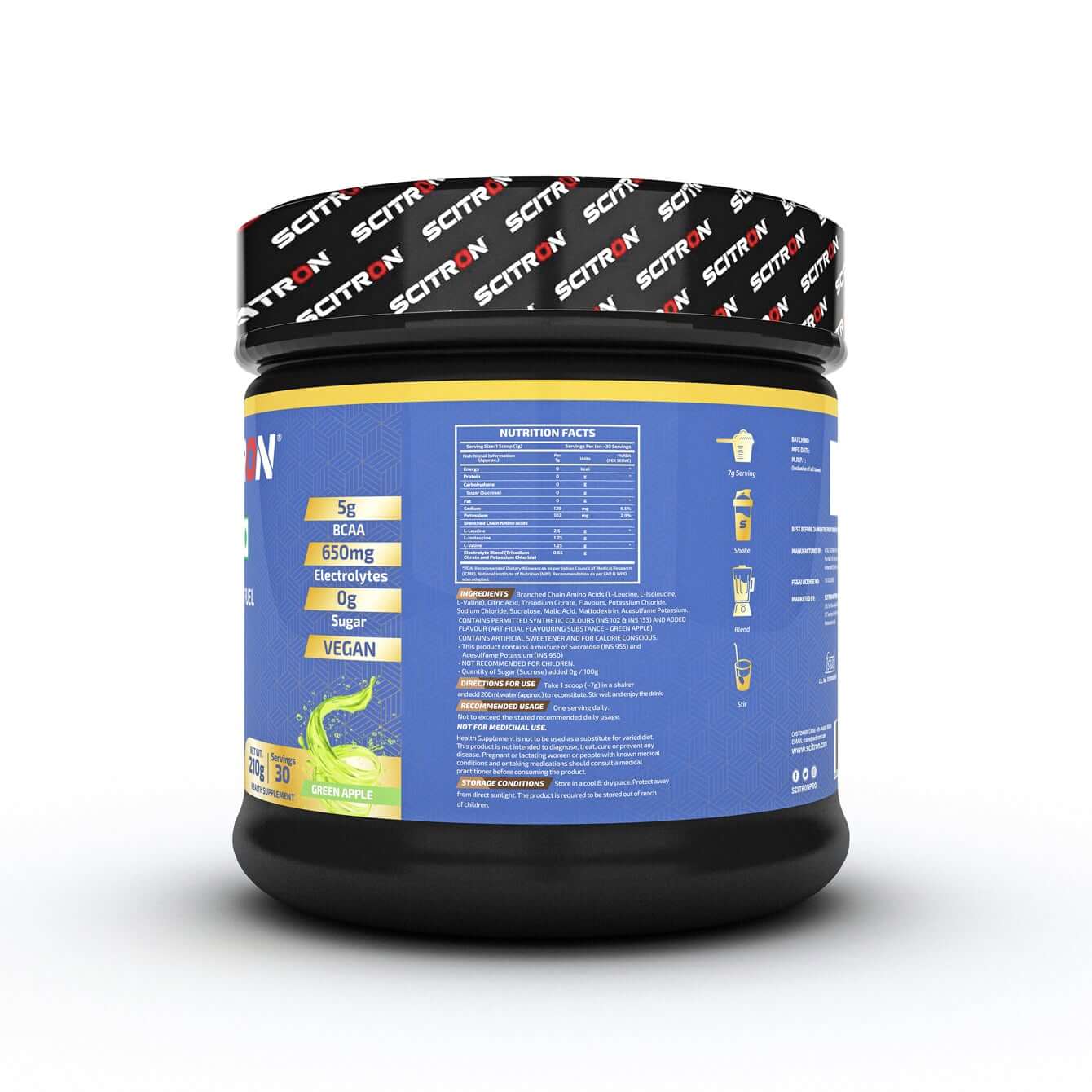 Scitron Nitro Series BCAA which is a blend of three essential amino acids: Leucine, Isoleucine and Valine, in the ratio of 2:1:1, could stimulate the building of protein in muscle and reduce muscle breakdown, improve exercise performance, prevent fatigue, improve concentration during intense exercise, which can be taken by anyone looking for such results. Made with premium ingredients, it delivers great nutritional value and helps achieve desired results.